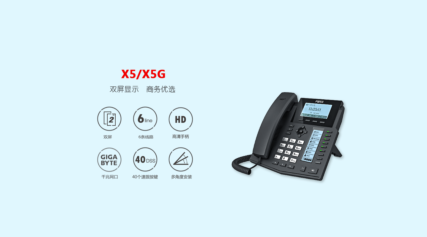 > Fanvil/方位X5G 6线注册 IP/SIP/VOIP网络电话机 DSS显示屏